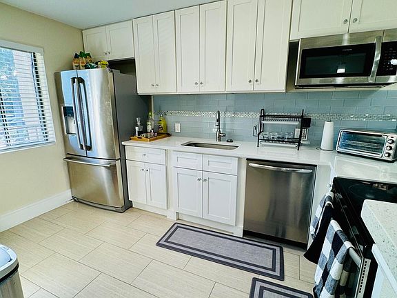Welcome to this beautiful 2/2 totally renovated condo. Gorgeous open plan kitchen with quartz top, 2 walk in closets, new flooring, washer and dryer located inside the unit. Beautiful garden view, walking distance to swimming pool. The building has an elevator. Cable, water and internet are included in HOA monthly fee. Close to Turnpike, supermarket & shopping center. MOTIVATED SELLER!