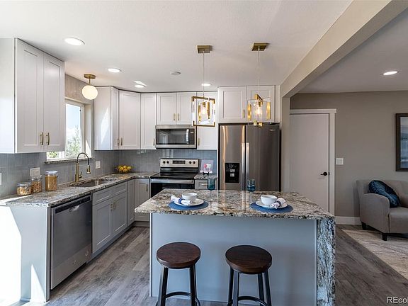 Stunning high end remodel with sweeping mountain views! A rare find in a very desirable Pheasant Run neighborhood. Upon entering the home you are greeted with open The home features master bedroom on the main floor with a walk in closet, a barn door to the remodeled bathroom. kitchen is to die for with the new 48" custom two color cabinets with dove tailed soft close drawer, granite countertops and granite waterfall on the island, stainless steel appliances erc. Brush gold custom light fixtures are carefully chosen and installed throughout the house. On the second floor there are two more bedrooms with a full bathroom. New trendy hand scraped grey oak Germain made laminate is installed on the main level, new carpet paint, trim doors, hardware are installed through out. All bathroom are remodeled with it is own style. They have new new tile on the floor and walls, new tubs, vanities and fixtures. In the basement there is a family room and a very spacious bedroom with a bathroom en suite. It could be another master suite if desired. The home also has new roof, new windows, new furnace, new garage door and water heater. The home is close to parks, pool Cherry Creek Reservoir park and shopping. Seller will give buyer $10000 towards buyer's closing costs/buydown or will have a professional contractor install a 6' fence around the property perimeter before the closing.