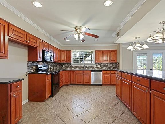 Spacious brick home with 5 bedrooms, 3 full baths and waterfront living, dock, piers for boats. Master up and down and over sized lot and many recreation areas. Rear yard access and large front carport and porch area.