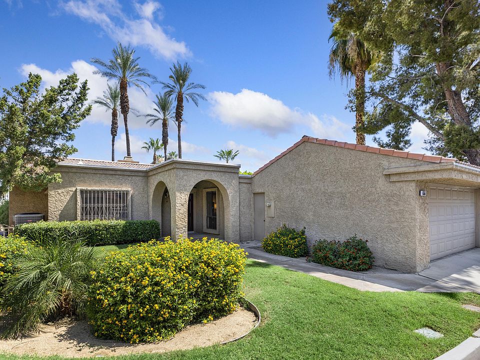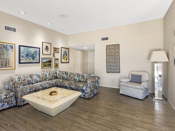 The winning combination is found in this outstanding condo at Hidden Palms! Great corner lot and look carefully and you will see that it is fully detached. No common walls here! Get everything you want with single level living, quiet,interior greenbelt location and a double garage. Enjoy the convenience of being close to everything you want to do in this super well located community. This is the largest floor plan in the neighborhood and features a full three bed and two baths plus a bonus room with closet that could be anything you from a media room to a fourth bedroom. There is a fireplace in the spacious living room which has high ceilings and a slider leading to the huge patio overlooking the greenbelt. With mature shrubbery offering privacy you can do lots of outdoor living here. As an added benefit you are close to the pool, but not too closeUpdates: many improvements including new tile flooring throughout the living areas, recent interior paint and HVAC system has been fully update. Finally, the roof was resurfaced in the past few years. You are miles ahead with these great improvements.Hidden palms features beautiful grounds with walking trails, pools, spas, clubhouse and lake.Location amenities, condition and space make this home a best buy for sure.