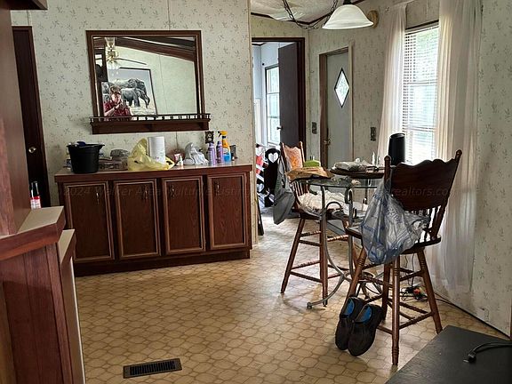 2 BR/2BA singlewide mobile home, Double metal carport, 3 storage buildings. Large living room with mirrored ceiling. pretty kitchen cabinets. Large master BR/BA with huge garden tub and walk=in shower.