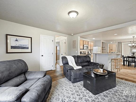 OPEN FLOORPLAN, SINGLE-LEVEL CHARMING HOME COMING SOON (Showings will start Jan. 5). Available Mid-January Located in Ambercreek, Meridian. 3 bedrooms, 2 baths, and 2 car rear-entry garage with added storage racks and shelves. Laminated flooring throughout living area and nice plush carpet in bedrooms. Kitchen has high countertops that can fit barstools and all cabinets have been enhanced with modern handles. Appliances include stainless steel smooth-top electric range (which is so easy to clean!), over-the-range microwave, stainless steel dishwasher, and sink with garbage disposal. Refrigerator included. Large master bedroom has spacious walk-in closet with plenty of storage space and shelves. Samsung washer and dryer are included in private laundry room. Room also has small pet door leading to enclosed patio with no required yard maintenance. FREE grill/smoker will be left there for you to grill your welcome steak too :) Yard mowing and edging is included in rent, or it can be negotiated if you'd like to maintain a perfect yard. Tenant is responsible for setting fully automatic sprinkler system and schedule. One year lease. 2 pets, 30 lb max allowed with pet deposit. NO SMOKING on property. No vaping. Central Heat and A/C with smart thermostat Deposit = 1 month's rent No charge to tenant for watering lawn with Meridian irrigation district! Located on a quiet road with very low traffic. This rental won't last long! Message to schedule a viewing and receive application. Nearby Destinations: - Settlers Park - Julius Kleiner Park - The Village - Eagle Island - Roaring Springs Waterpark - Downtown Meridian Top Rated Schools: - Willow Creek Elementary School - Sawtooth Middle School - Rocky Mountain High School Yard mowing and edging is included in rent, or it can be negotiated if you'd like to maintain a perfect yard. Tenant is responsible for setting fully automatic sprinkler system and schedule. One year lease. 2 pets, 30 lb max allowed with pet deposit. NO SMOKING on property. No vaping. Central Heat and A/C with smart thermostat No charge to tenant for watering lawn with Meridian irrigation district!
