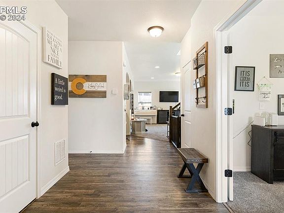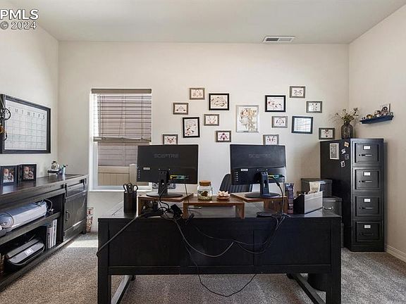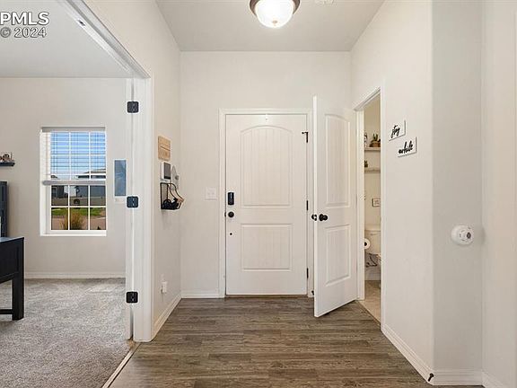 Don't miss your chance at this like new home just minutes from Petersen AFB and close to shopping along Powers. Open concept living room creates the perfect space to entertain with seamless access between the living room, kitchen, and back yard! The kitchen boasts a massive island featuring slab granite counters and a gas stove that makes cooking a breeze! Office with french doors on the main level provides a great space for working from home! Head upstairs to find the ideal family hangout space. Massive family room is perfect for movie night, kids play area, or any type of secondary living space that you may need. Primary bedroom offers all the space you could possibly need in a bedroom. A 5 piece attached bath with large soaking tub and big walk-in closet, this is a bedroom you may never want to leave. Two additional bedrooms on the upper level both feature walk-in closets and ample space, making them ideal for kids, guests, or roommates. The 3 car attached garage provides additional storage and the ability to keep your vehicles out of the Colorado weather. And the best part, no HOA! Homes like this don't last long, so schedule your showing today!