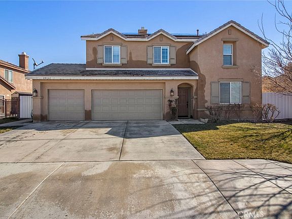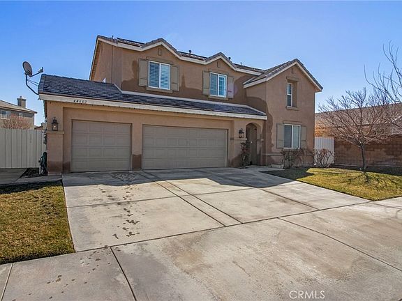 Come and explore this bright and spacious four-bedroom home at 44662 Ruthron Avenue! Located in the highly desired city of Lancaster, this beauty of 2,813 SF of living space was built on a large 7,182 SF lot size in 2005, offering lots of amenities and comfort. Experience comfort and convenience when you enter this two-story property. Beyond the formal living and dining rooms, find the kitchen, featuring all newer appliances and bright kitchen island. Adjacent to the kitchen, enjoy the great room with a fireplace, perfect for entertaining with friends and family. The bonus office/den is a great touch to the property and can be used for several purposes. The second story offers 4 bedrooms including a large primary bedroom with an en-suite bathroom and two generous walk-in closets. Gather friends and family outside where they'll enjoy a paver covered patio, perfect for entertaining. A backyard with plenty of desert plants and plenty of space to expand and create your own oasis. With dual zoned A/C units, newer shutters, a water softener, and solar panels this property is modern, efficient, and ready to enjoy! This stunning property is ready for you to move into and make it your own.