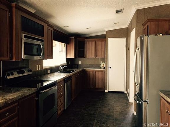 This is a 2011 Palm Harbor home, called the "Gimmie 5" on their site. It has 4 bedrooms, one study with a built in desk (and full closet), 3 full baths. There are many cabinets in the kitchen and plenty of counter space. There is a laundry room by itself. The home was built with an included surround-sound system.