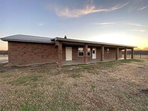 Brick home located on 80 acres in Welch, Ok. It’s surrounded by a manicured mature pecan grove with plenty of established grass for grazing, and a perimeter barbwire fence. Additional features include a large equipment barn with sliding doors, a well-house, and a fenced yard with room to garden. Property has 2 working wells, 2 cattle guards, a solid pipe cattle catch pen, plus an additional storage shed at the front of the property. Home is 2bd 1ba with an open floor plan, attached 2-car garage, and covered front and back porch. Kitchen appliances included, plus a wood-burning stove in the main living area.