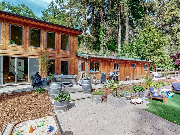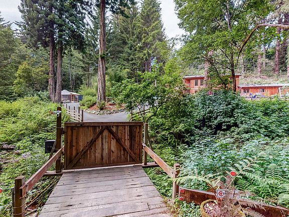 Secluded Custom Modern Home in landscaped haven. Close to Clam Beach and Town, you'll feel remote and relaxed in the sun-filled redwoods. This home offers modern amenities for all occasions, including two outdoor showers and a sauna! Vaulted ceilings with south facing windows and many skylights let the warmth of the sunshine fill the house. Currently functioning as 2 Bedrooms, the over-sized laundry/ mudroom with storage as well as upstairs rec room offer layout options for families! A well placed yurt creates a daytime hideaway or guest accommodations. A wrap around driveway circles the koi pond, all behind your gated bridge entry, this home offers custom detail that is a must see