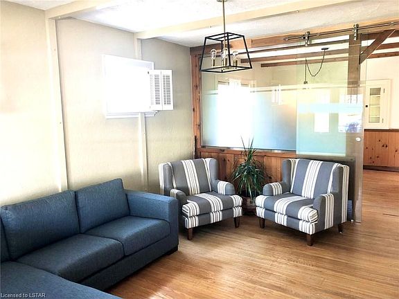 Loaded with charm on a private lot in the desirable ever-growing Lambeth. This stately home is inviting as you walk up to the spacious front covered porch. A beautiful entryway leads into a large bright living room. Two good size bedrooms with large closets on the second floor with a large bathroom. Spacious kitchen with a large picture window overlooking the well-treed backyard. There is a full bathroom and finished laundry room in the basement, the unfinished portion of the basement is waiting for your personal touch. Imagine large family gatherings on the deck in this captivating private backyard. Easy access to highways and close to great schools, restaurants, shopping, trails, and so much more.