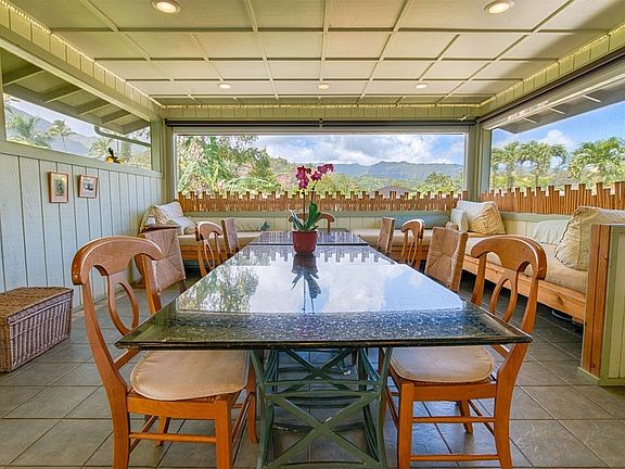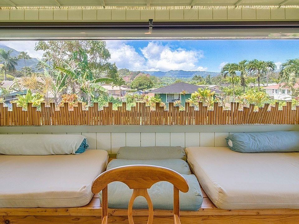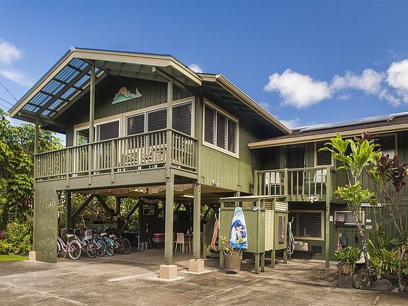 Hale HAHA is a charming 5 bedroom, newly remodeled home, located within 5 minutes walking distance from Hanalei Bay beach and the conveniences of the Hanalei town center and the Hanalei town farmer's market. Amazing views of the mountains. Highly successful permitted Transient Vacation Rental. Exquisite views of the spectacular mountains and waterfalls provide the backdrop for this tropical paradise. Bicycles & boogie boards are provided so you can fully enjoy beach town living. The house is ideal for large, extended families or groups and can sleep up to 12 people. It is furnished with top quality mattresses and fine hotel quality bedding. Each bedroom has glass doors leading out to decks that seamlessly merge the outdoor splendor with the indoor conveniences. The two large suites have a/c. The kitchen is fully equipped with a new electric range & everything you might need for great family dinners. A screened lanai (porch) wraps around two sides of the house, providing places to dine, lounge, play games and take in the panoramic views. There are extensive amenities including barbecue, a ping pong table, pool table, bikes, boogie boards, and beach chairs and umbrellas,& children's sand toys There is also a hot tub available for use. The property has an herb garden, and fruit trees (lemons, limes and bananas) that are a real treat when in season. At Hale HAHA you will breathe the clear tropical air and delight in the pleasures offered by a wonderful home, so close to beach, surf, mountains and town.