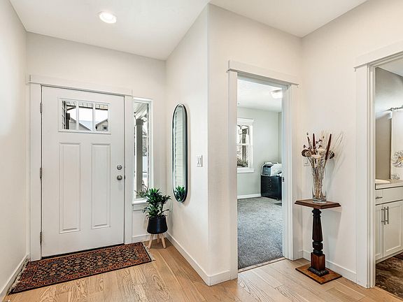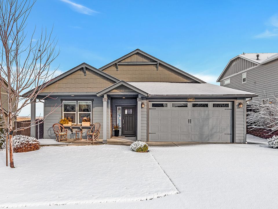 Darling Emerald View Estates single-level home on a .21 acre lot with stunning mountain views. This better-than-new 2018 built home has been immaculately maintained and comes with significant upgrades. The 3 bedroom 2 bath 1,800 sqft open floor plan flows effortlessly into the vaulted great room, kitchen, and dining areas. List of upgrades includes BlueStar gas range; Bosch dishwasher; engineered hardwoods through main hallway, great room & kitchen areas; Central AC; ceiling mounted heater in garage, fresh interior paint, expanded rear deck, etc. Enjoy the expansive sweeping views from the 284 sqft added rear deck with stairs leading to the gently sloping fully landscaped yard. Great location in SW Redmond!