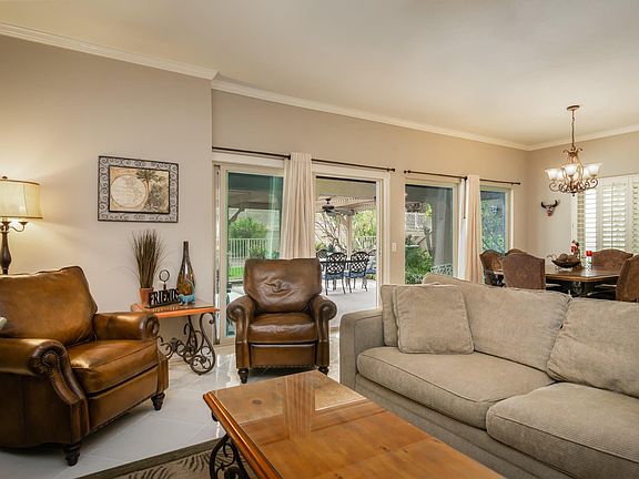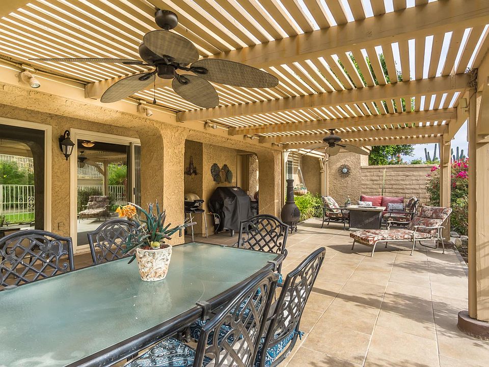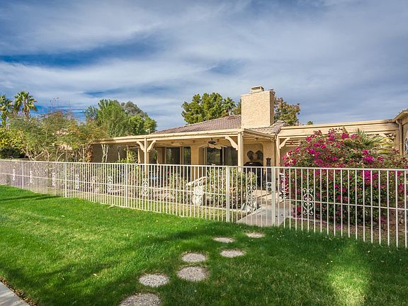 There is no hiding the great value in this beautifully remodeled gem at Hidden Palms! Perfectly located away from the busy streets this condo provides ultra private single level living with style. The walled and tiled entry courtyard will be flooded with morning sun. an provides a great outdoor space that is totally private from the street. Once inside notice the new flooring, new doors and windows, plantation shutters higher ceilings. The remodeled kitchen has an eat in area but there is also a dining room. Stainless appliance, including wine fridge and granite counter tops. The spacious Living and dining areas open to an expanded, upgraded and very private patio. Enjoy the ultimate outdoor experience on this massive patio. Overlooking a quiet greenbelt your living space is easily double by this inviting feature of the home. Back Inside you'll find a large master suite with bath. The master suite enjoys patio views as well. A Secondary bedroom and another upgraded bath. complete the home. Laundry room and attached double garage with many built in cabinets. Hidden Palms is a centrally located gated community with sports courts, pools, spas lakes and walking trails. Mere minutes to all the conveniences you will need in Palm Desert. Looking for a low maintenance, stylish & private Desert retreat? You just found it.