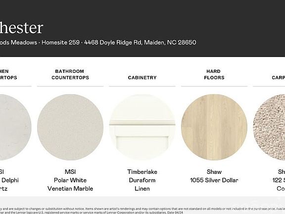 This new two-story Dorchester floorplan combines elegance and comfort. At its heart is an extended first-floor Great Room flowing into a chef’s kitchen and a breakfast nook with a door to the covered patio. A formal dining room is ideal for memorable meals. Three bedrooms including the owner’s suite are situated on this floor. Upstairs are a bonus room and a fourth bedroom alongside another full bathroom. Plus, our signature Everything's Included program means you will get quartz or granite kitchen countertops, subway tile backsplash, ceramic tile, and luxury vinyl plank flooring at no extra cost! Nestled in the foothills of Maiden and bordering Denver NC, Shannon Woods is a masterplan community with two collections of homes. Future onsite amenities include a swimming pool and multi-use trails. The community offers small-town living and convenience to to local schools, parks, shopping, dining, art and entertainment.