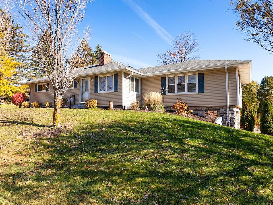 Interested in easy access to countless conveniences while relaxing in your own private one acre retreat? This property could be for you! Nicely maintained ranch features a HUGE living room with a pellet free-standing stove, updated kitchen with LVP flooring with newer appliances and a cozy hearth room with an impressive FP. Professional landscaping and pride of ownership abounds this property! Beautifully detailed stamped patio with outdoor bar and firepit, perfect for entertaining. Huge, private backyard. Two car attached garage and a ''gotta see'' 3 car detached garage featuring volume ceilings, it's heated, epoxy flooring, upper and lower bar areas are just a few of the amenities. Schedule your private showing today!