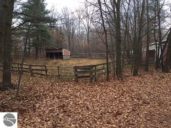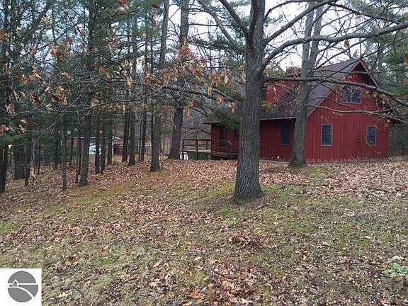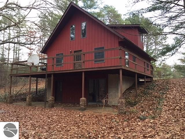 Chalet on 10 acres of woods. Efficient galley kitchen. Brick fireplace. Lower level walkout to patio. 2 bedrooms on main level, upper level master suite. Loft. Wrap around deck. Wood and/or propane forced air heat. Stable. Corral with lean-to and all 10 acres completely fenced. Only 1.5 miles from all sports Littlefield Lake public access. Home updates 2012 including roof. Interior and exterior freshly painted. Be sure to see it. Quick possession.