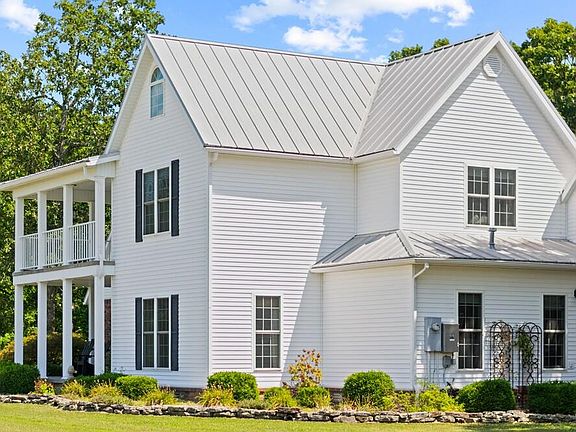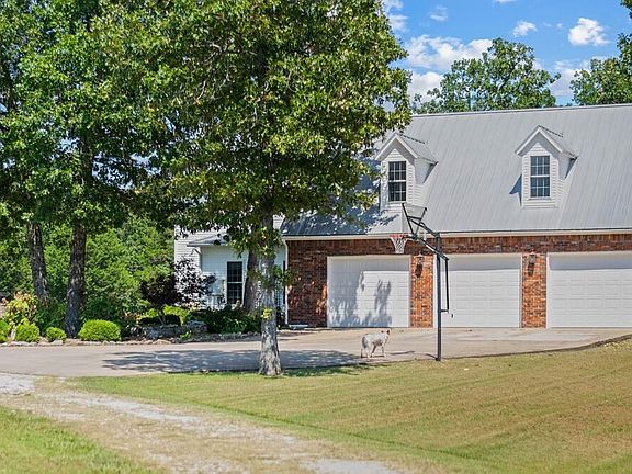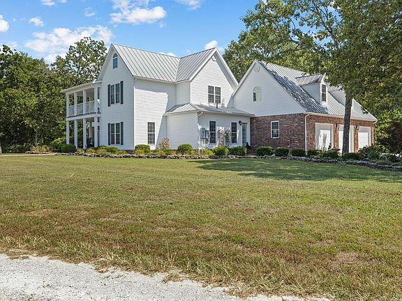 This elegant 4,400 sq ft farmhouse-style home sits on 21.5 acres with breathtaking Ozark Mountain views, just 5 miles from Harrison. Built 18 years ago, it's in pristine condition, offering 3-4 bedrooms (bonus room as a 4th), 2.5 baths, 2x6 walls, 9 ft ceilings, large windows, crown molding, and ash and hickory hardwood floors. The living room features a gas fireplace, while a wood stove warms the glassed-in sunroom. The eat-in kitchen is a chef's dream, with stainless steel appliances, Silestone quartz countertops, and a spacious pantry. The main level includes a formal dining room, den, and a luxurious master suite with an office, dual walk-in closets, and a modern bath with heated tile floors, a soaker tub, double vanities, and a walk-in shower.