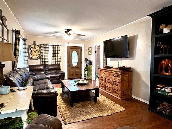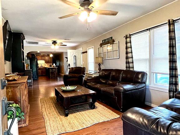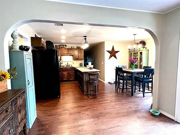 Country living just on the outskirts of town! This 3-bedroom, 2 bath home sits on 8.33 acres mol and is move in ready. With an open floor plan, island in the kitchen with cement countertops and a dining area for family dinners you will feel right at home as you enter the front door. Some of the unique features include arch openings, epoxy penny floor in the hall bath, the silo storage bin and the stained concrete master bedroom and bath make this a one-of-a-kind home.