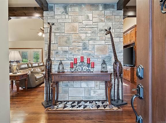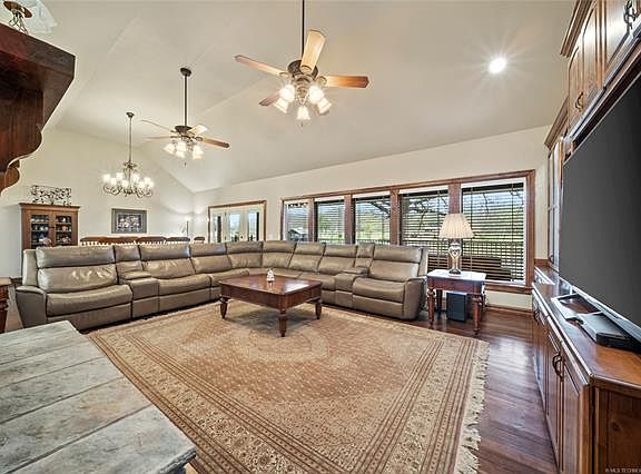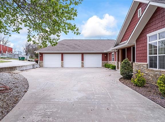 Vinita address but located on Grand Lake. Custom home built in 2013. It sits on primes Grand Lake waterfront & has +/- 300' of shoreline. Walnut flooring throughout except wet areas which are tile. Laundry room & Mstr br layout where you have access to the closet & laundry room from the master bedrm. Fenced yard & there is safe room in the walk-out basement. Walkout basement. It has a full bar, half bath & closet. Behind the bar is a full galley kitchen w/sink, range w/over head microwave & refrigerator.