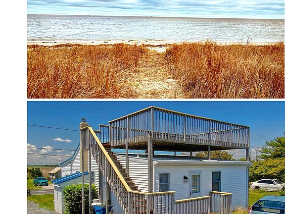 BEACHFRONT COTTAGE! ROOFTOP DECK and lower decks! Panoramic Views! Back on the Market Due to No Fault of the Property or Sellers! NOT due to appraisal- the previous contract/appraisal was at $450k+! Unique and Cozy Beach Front Cottage Directly on the Delaware Bay in Slaughter Beach! Enjoy both sunrises and sunsets from the ROOFTOP DECK and lower decks. This UNIQUE Waterfront home with Beach Access gives you ownership from the street up to the high water line. If you have always dreamed of living steps to the beach, or you are looking to invest in a vacation rental property - this is the home for you! This unique and quirky beachfront cottage is about 1050 square feet, features 2 bedrooms and 2 bathrooms + a Den/office, and is ONLY STEPS TO THE BEACH. Enjoy both sunrises and sunsets from the ROOFTOP DECK and lower decks. The kitchen is open to the living room and a small dining/breakfast nook. Septic new in 2015. 1 car garage and shed. If you have always dreamed of being steps to the beach, or are looking for a vacation rental - this is it. Home inspection completed prior to listing and report is available for those with serious interest. Sold As-Is, Home inspections for informational purposes only. Slaughter Beach has a Fire Department, Fire Hall, public beach pavilion, public bathrooms, public tennis courts, and public basketball courts. Just a minute to Cedar Creek Marina and the DuPont Nature Center and about 7 miles to the new BayHealth Medical Center. Boundary lines in photos are not exact and are a visual illustration of the lot dimensions.