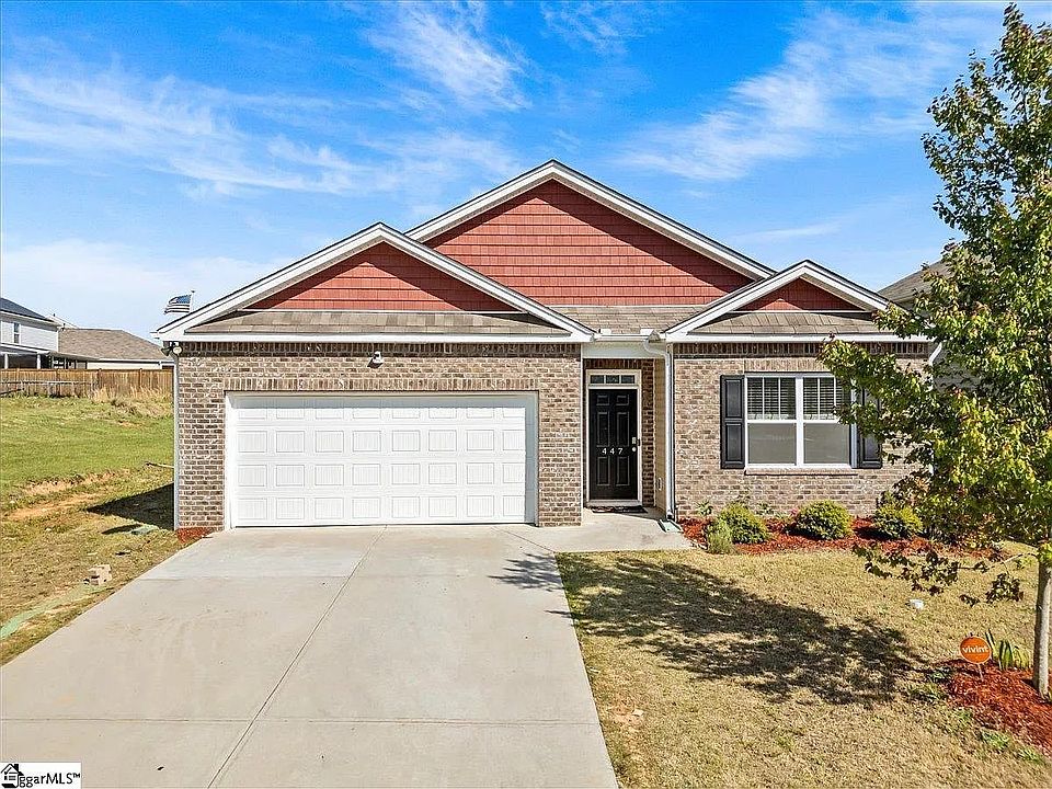 Welcome to your dream home in the rapidly growing city of Woodruff! This beautifully crafted 4-bedroom, 2-bath Craftsman-style residence, built in 2021, blends modern comfort with timeless character. Step inside to find soaring high ceilings and an open-concept layout perfect for entertaining. The spacious kitchen features gleaming granite countertops, stainless steel appliances, and plenty of cabinet space, flowing seamlessly into the dining and living areas. This home is also equipped with a security system for peace of mind. The expansive primary suite offers a peaceful retreat with a large walk-in closet and a luxurious ensuite bathroom, complete with a double vanity and a walk-in shower. Three additional generously sized bedrooms provide ample space for family, guests, or a home office. Enjoy outdoor living in the level, fenced-in backyard with privacy along the rear perfect for relaxing or hosting summer gatherings. The community playground adds even more appeal for families. Located in the desirable Ellington subdivision, you're just minutes from the new BMW plant, close to Hwy 101, and only 15 minutes from I-85 and the vibrant Five Forks area of Simpsonville, where shopping and dining options abound.