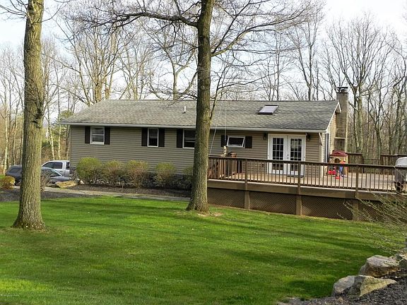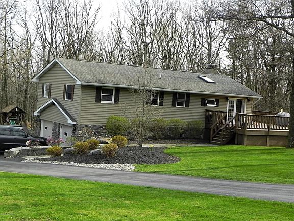 MOVE IN READY!! Don't miss out on the exceptional ranch home. Home features 4bd/2 ba. Pergo floors, spacious liv , large eat-in kitchen w/SS appliances, LL family room w/wood stove, private LL bedroom, vent free AC, french doors to your large entertaining deck, paved large circular driveway & 2 car garage. Sits on a beautifully flat, corner landscaped 1.44 acre lot w/playset & playhouse/shed combo.