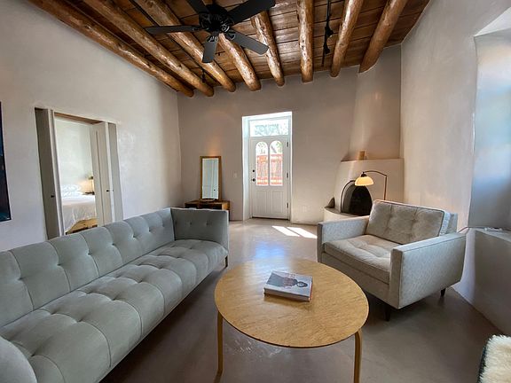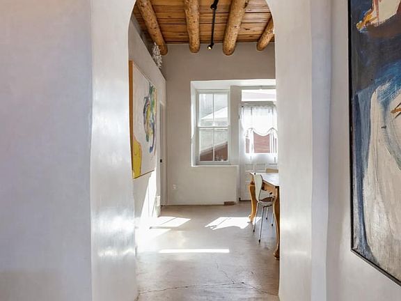 Furnished, 2 bedroom, 2 bathroom. Adobe home with high ceilings, concrete floors, radiant heat, plaster walls, private courtyard, washer & dryer. Ideal location! Walk to Plaza, Canyon Road, Railyard District, Farmers Market, Whole foods, Restaurants & more. 6 month lease with option to renew. $2800 per month $2800 deposit $2800 per month, utilities included. Tenant responsible for wifi. 6 month lease with option to renew No Smoking No Pets Parking for 1 car only