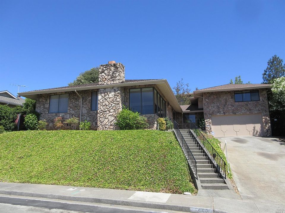 Custom View home with fresh paint and new flooring! Outstanding views across the City to San Pablo Bay to Mt. Tam. Two en suite masters with views, plus 2 bedrooms and 1 bath. Super spacious and Viewtiful living and dining rooms. Terrazzo floors, marble hearth, some hardwood, tile baths, eat-in kitchen, central heat, plenty of parking, and fabulous natural light. Mature landscaping & large patio. Wonderful location in the hills of East Vallejo!