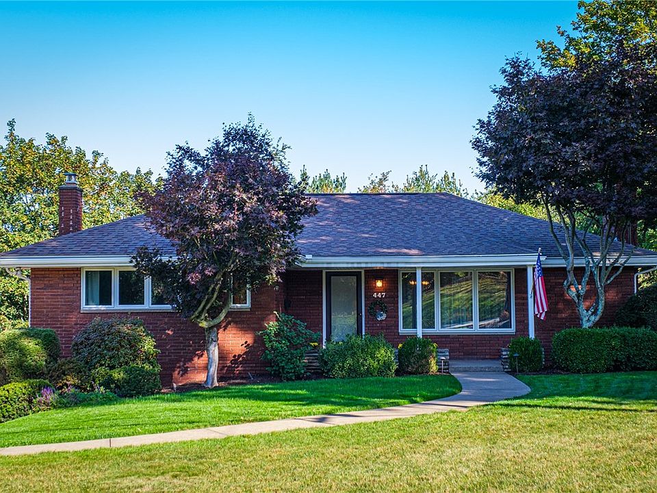 447 Colonial Drive is a meticulously maintained 3 bedroom 2 1/2 bath brick ranch-style home with modern updates and Pella fiberglass windows. The home features a spacious living room with a fireplace, a formal dining room, and a well designed kitchen with modern cabinetry, tile back splash, and a Silestone quartz countertop. The master bedroom and two other bedrooms, along with a full bathroom and a powder room are all on the main level. The lower level offers a finished basement with an open family room with fireplace, a full bathroom, and a laundry area. A large awning covered deck and stamped concrete patio add outdoor living spaces to the backyard making this area perfect for entertaining. Conveniently located in a quiet, low traffic Monroeville neighborhood just minutes from hospitals, dining, shopping, parks, and access to major highways.