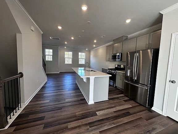 Brand new 2024 built townhome with 3 bedrooms and 3.5 Bathrooms, almost 1900 sq ft. Great schools! The first floor has 1 bedroom with a full bathroom. The second floor that has open concept has a family room flow to the dining room and kitchen. Kitchen has a big modern island, brand new appliances including gas range, microwave, dish washer and fridge. Subway style backsplash, upgraded grey cabinets, granite countertops. Third floor has a huge Owner's suite with a walk-in closet, a large seated area in the shower. 1 additional bedroom with a full bathroom and a laundry room also sit on the third floor. Community amenities include: a clubhouse, pool, play fields, pocket parks, tot lots, fitness center and greenway trails. Additionally, townhome owners will enjoy included full lawn care and maintenance.