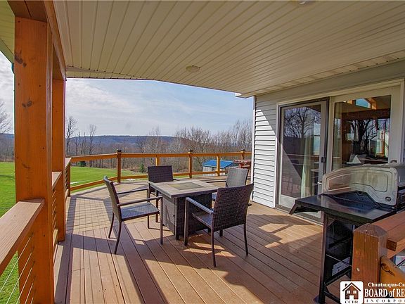 Custom built home set on 10 acres in the Frewsburg district. This ranch style property offers stunning views of the countryside and sunsets. Take in the scenery from expansive deck which offers a covered section for protection from the elements. The lot offers a rolling terrain and a mix of yard and wooded area. Privacy is plenty as the lot is surrounded by mature trees. Step inside and you'll love the utilization of space, craftsmanship and the condition of the home. The great room boasts cathedral ceilings, natural lighting and amazing views. The space is so well appointed and functional. Kitchen has tiled backsplash, island, loads of cabinetry and the major appliances are all included. Access to the decking is from the great room which makes for easy entertaining. The bedrooms are each located on the main level along with a full bathroom. The lower level is at grade and has walk out access to the rear yard. This area includes a spacious family room, second full bath, finished laundry area, utility room and access to the garage. There is packed gravel ready to add an outbuilding or to use as parking. More than a home it's a Lifestyle! Delayed negotiations until 3/18/24 at 5pm