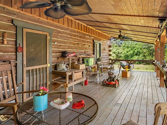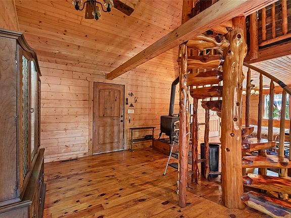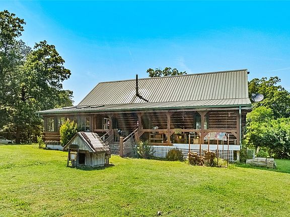 Nestled atop a serene hill, this property offers a harmonious blend of rustic charm and modern accessibility. This 2,064 sq ft log cabin, constructed in 2004, features a thoughtfully designed split floor plan with two bedrooms and two bathrooms. The main level houses the master suite and a second bedroom, while a handcrafted cedar spiral staircase leads to a versatile loft space. The home’s interior boasts central heating and air conditioning, complemented by a cozy wood stove. A sunroom and a covered front porch provide tranquil spaces to enjoy the panoramic views of the surrounding 42.22 acre +/- wooded landscape. Designed with accessibility in mind throughout the home. Enhancing the property’s functionality is a substantial 60’ x 40’ shop, equipped with two 10’ x 12’ overhead doors and an entry door, constructed with a metal and wood frame and exterior metal siding. Property sold AS-IS