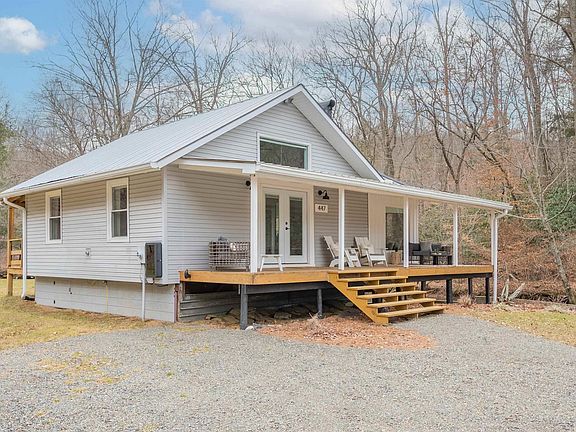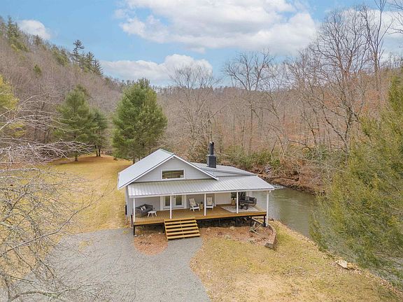 Here's a once in a lifetime property! Purchase as a potential vacation rental or a private get-a-way. A freshly renovated cottage inside and out, sitting on approximately 11 acres in the Blue Ridge Mountains with nearly 500 ft of Laurel Fork creek frontage. A spacious, level backyard runs parallel to the creek and secluded mountain land is yours to explore. The location of this home is truly one to experience. Not often can you fish for local trout from your front and back porch! The sound of rushing water can be heard throughout the home. Inside there is an open but cozy appeal with a plethora of impressive features. A second bedroom loft is accessed by a unique spiral staircase. The beautiful stone fireplace with insert is completely functional and aesthetically pleasing. This home is also being sold fully furnished! Outside there is a Tesla charger, RV hookup and a 8x40 shipping container with 4 doors to store your recreational items. There's too many features to list, call today!