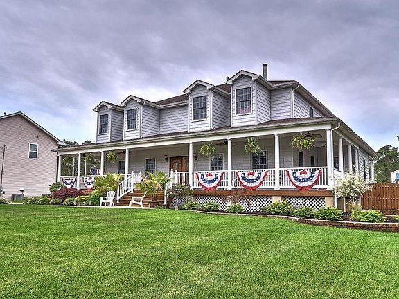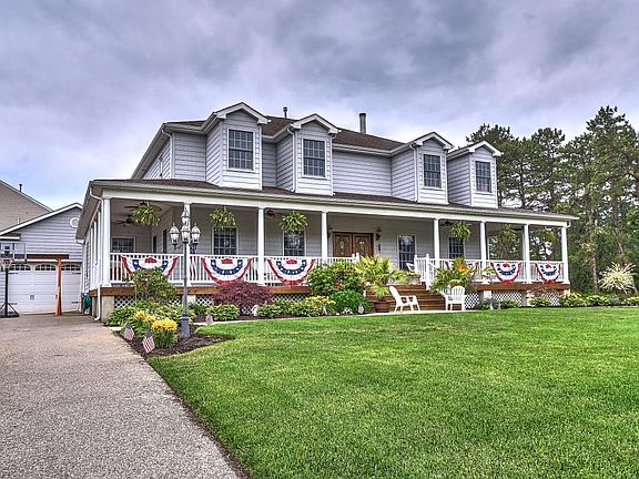 Exceptional Custom built 10 year young Colonial located in the Pinewald section of Bayville.This unique home is built on a dead end street with plenty of wooded scenery to watch nature from your wrap around porch. The 7 zone Sprinkler System keeps the Sod yard looking picture perfect.Follow the double wide driveway to the 24 X 24 detached Garage where there is plenty of room for vehicles,hobbies,attic storage and a separate electric panel. The fenced backyard boasts a patio,beach themed fire pit and a custom built playground for hours of fun. Inside this home you will find over 4060 square feet of living space. The Kitchen features:A full Stainless Steel Appl Pkg, Breakfast Bar as well as a center Island.Family Rm has a 2 sided wood burning fireplace that opens to the Frml Living Rm.