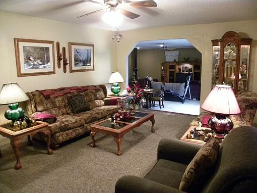 71410- JUST REDUCED to $135,900!!!This great country home is a must see. This has 3br, 2bath, huge family room with decorative wood stove, ch.ca, beautiful kitchen with unique cabinets newer appliances, great countertops, island w/storage, french doors to deck. This is a wonderful setting, backoff a paved road in a good neighborhood. It has a 12x20 workshop, a 12x12 craft building w/porch, and a cute horsebarn w/3 stalls and tack room. The back 2 1/2 acres are fenced and ready to go with a pond. 6 + acres ready for your animal. $135,900 REDUCED !!!!!