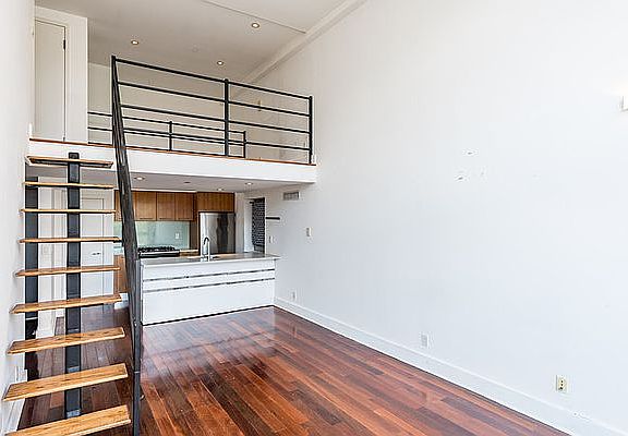 Sunny modern duplex studio apartment. Second floor walk up. Tremendous floor to ceiling windows. BEAUTIFUL KITCHEN with full sized appliances and dishwasher. Large living space. Separate lofted area with good storage. Roof deck with skyline views! Located in Williamsburg close to McCarren Park. 5 minute walk to the L train at Graham Av.