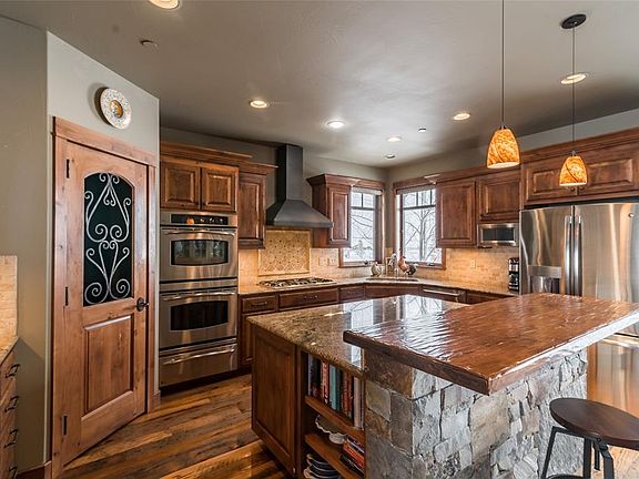 Stunning 3 bed, 2 bath single level home with a fully finished basement on the South Side of Bozeman. Majestic unobstructed views of the mountain ranges highlight this custom designed home that backs to 42 acres of designated open space. The main level is packed full of high end features. Upon entering the Hyalite View Estates home, you will find circle sawn hardwood floors, a large living room with a dry bar and a floor to ceiling stacked rock fireplace is situated on the left. On the right you have a sitting room which is close to the kitchen and dining, making it a dream for entertainment. The kitchen features high end appliances, a Butler's pantry, granite counter tops, large kitchen island with a butcher block seating area, and open dining room. The main level master suite looks out on to the park-space and features a sitting room/office, walk-in closet and tile shower. The basement features an additional family room, 2 beds, and a full bath with beautiful radiant concrete floors.