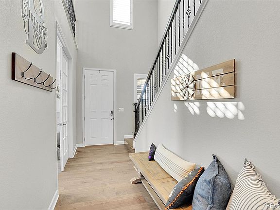 The beautifully landscaped backyard includes a stamped concrete patio, a gas fire pit, and a charming pergola, perfect for outdoor entertaining. The large covered front porch invites relaxation and is surrounded by easy-to-maintain perennials and mature trees. Plantation shutters throughout add a sophisticated touch, and the primary suite features a professionally designed custom closet organizer for all your storage needs.