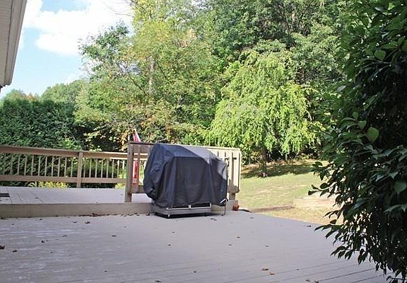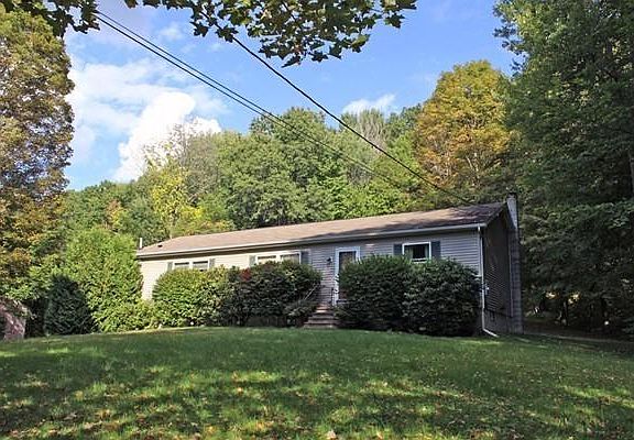 Set back from the road.... Blink and you could miss this attractive Ranch style home with a wonderful floor plan that includes an open kitchen with two dining areas on either side and a breakfast bar. The master bedroom and it's own bathroom are on one side of the living room and two bedrooms and a full bathroom on the other side. Laundry room and family room are in the basement right off the garage. The double deck overlooks a private back yard, stone walkway and stone walls. Bordered by woods and evergreens. Conveniently located with easy access to Rte 63 going north and south and Rte 2 going east and west.