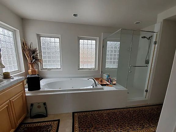 has a deep soaker jacuzzi tub that fits both Him and Her (and a newer water heater)