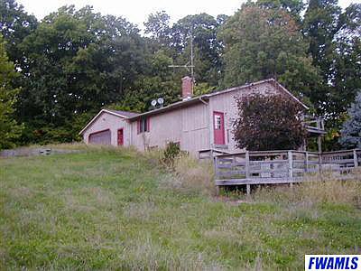 Very picturesqe and private setting. About 1/2 mile driveway to house and backs up to wooded area. Large deck, and large 2att28x29 gar. Wood stove area. Kitchen in basement. A total of 4 Patio doors accessing multi-level deck. Nice sloping lot. foyer.