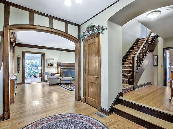 Welcome to this beautiful Tudor style home that sits on two lots in the desirable College Hill addition. Enjoy the stunning curb appeal, canopy of mature trees, covered front porch and more as you approach the entry. The home's interior is even more impressive with crown molding, the richness of surrounding woodwork, updated kitchen cherry cabinets, updated bathrooms and newly refinished hardwood floors. The main floor features an exquisite formal living area, a formal dining room with built-in bar/hutch and pass-thru to kitchen, library with beautiful built-ins, a sun room with new windows to allow all the natural light in while you sit and relax. The kitchen features large island, plenty of cabinet storage, gas range, stainless fridge, stove and dishwasher all remain. The Master bedroom located upstairs with spacious bathroom en-suite to include two sinks, walk-in shower and privacy water closet, also has an attached nursery/office for convenience. An additional 3 bedrooms, 2 full bathrooms and laundry room complete the upper level. Downstairs you will find a family room, TV/game room, guest half bath and work room. Plenty of extra storage in the attic with a cedar closet. The backyard offers an over-sized 2 car detached garage, concrete patio, some of the most impressive trees in the area, to include a +\-100 year old oak tree, and plenty of open space to entertain family and friends, while enjoying the shade. This home offers all the charm and character of historical College Hill homes with upgrades throughout to eliminate the frustration of on-going repairs and updating. Call today for your private showing.