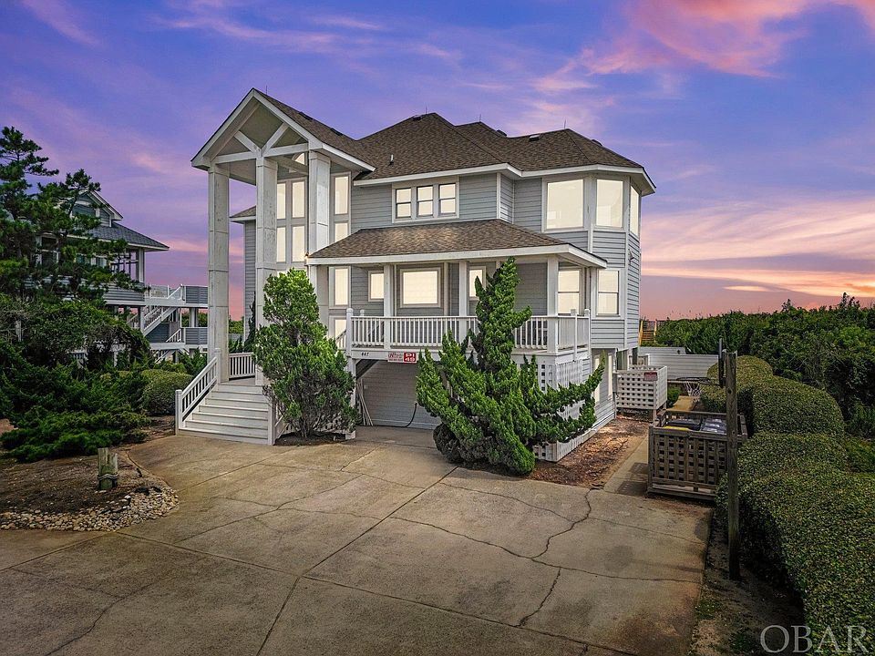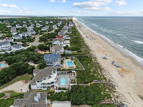 This exquisite oceanfront home in Pine Island, located at the end of a quiet cul-de-sac, features 6 bedrooms and 5.5 bathrooms, with 5 bedrooms offering en-suite facilities. The top level showcases an open-concept design, highlighted by a stunning kitchen equipped with stainless steel appliances, a wine cooler, granite countertops, two "Wolf" wall ovens, a six-burner range, and a custom backsplash. Elegant hardwood floors lead to a great room with cathedral ceilings and a gas fireplace. Expansive windows capture breathtaking ocean views, while a spacious oceanfront sun deck provides an ideal spot to enjoy sunrises and spot dolphins. On the mid-level, you'll find a media/family room complete with a mini-kitchen, second refrigerator, icemaker, microwave, and surround sound system—perfect for movie nights. This level also includes a convenient laundry room. The ground level features a heated 30' x 12' concrete pool, surrounded by a generous stone patio with a Bluetooth sound system—ideal for entertaining. Additional outdoor amenities include a hot tub for 9, two outdoor showers, a fish cleaning table, a built in gas fire pit for cozy gatherings, and a large tiki bar with a mini fridge, gas grill, and seating for 6. The game room adds to the entertainment with a pool table and a full-sized arcade-style video game. This property also offers a private walkway and steps leading directly to the beach. The Pine Island community provides exceptional amenities, including a playground, clubhouse, tennis court, basketball court, volleyball court, 2 pools, one is within walking distance of the house and the Oceanfront pool is on Aububon Dr and even a landing strip for personal planes. An indoor fitness complex with tennis courts and a gym further enhances the lifestyle. With its excellent rental income potential, this home is not only a dream beach retreat but also a superb investment opportunity. The updates of this home are: Roof is less than 5 yrs, all ensuite bathrooms were remodeled 2018-2019, new LVP mid-level 2020, new lights ground floor 2020, outside deck/patio, firepit & Tiki Bar 2018, All new windows & sliders mid-level and new sliders upper level 2018. New beach crossover 2024, new pool heater 2022. To view the 3D floor plan copy & paste this link https://my.matterport.com/show/?m=subwZAyerKW&play=1&brand=0&mls=1&
