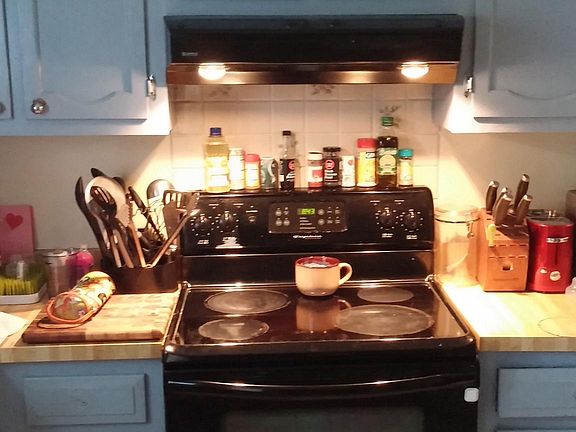 - Fireplace features: wood stove