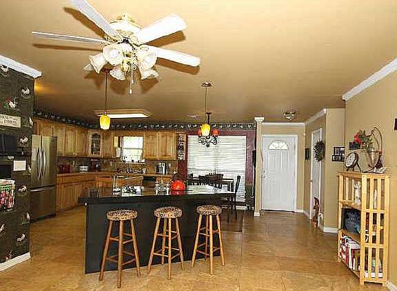 100% financing. Hill top views from large deck, living room, office & master bdrm. Open plan w/eat in bar, cooktop & rollaway serving bar w/storage pantry. Granite countertops. Ceramic tile floors, recessed lighting & stem lighting. R//Boat strge.
