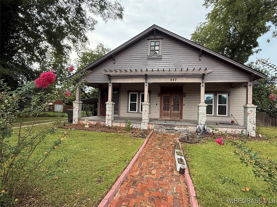 A must see! This unique 3 bedroom & 2 bath home has such character with unique craftsman style details inside & out. In 2015 the home was remodeled to include refinishing the original hardwood floors, beautiful new doors w/ transoms & prism sidelights, new central HVAC, new ceiling fan/light fixtures, entire kitchen (to include backsplash, cabinets & appliances). A new master bath was added in 2016 with a clawfoot tub. A new roof was installed in 2020. New Washer and Dryer in 2020 will remain with the property. New refrigerator in 2023. PECS plumbing under kitchen sink. Fairly new breaker system. Detached metal carport has recently been added with an attached shed. Beautiful high ceilings, two fireplaces with lovely old mantels. Home has a separate office off the living room; a nice place to catch up on your reading. WARNING: Back deck is not safe at all ~ do NOT attempt to walk on it. Home to be sold where is and in "as is" condition. Please make your appointment now to see this home ~ just around the corner from downtown shopping and restaurants. Buyers to satisfy themselves as to the accuracy of the information provided. Call today for your appointment to view!