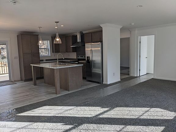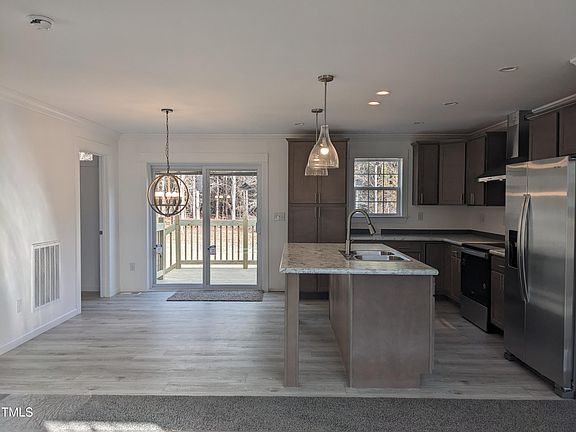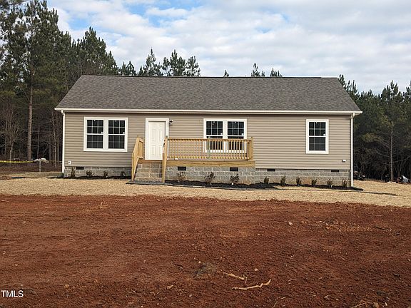 NEW 3 bedroom, 2 bathroom home sits on nearly ¾ of an acre near beautiful Kerr Lake in Vance County. The large kitchen features new stainless steel appliances (refrigerator, stove with hood, and dishwasher), soft close cabinets, plenty of storage space and a breakfast bar. The kitchen is open to the dining area and large living room. The large primary suite has dual vanities, backlit mirrors and large walk-in shower. The suite also features a generously sized walk-in closet. On the other side of the house, you'll find two additional bedrooms a separate bath featuring a backlit mirror and shower/tub combination. The home also has a separate laundry space big enough for side-by-side washer and dryer. There is crown molding throughout the home. Spend relaxing evenings on your front or back porch as you look out on your beautifully landscaped lot surrounded by pine trees. Conveniently located to Henderson, I-85 and Kerr Lake State Recreation Area, which is only 7.6 miles away!