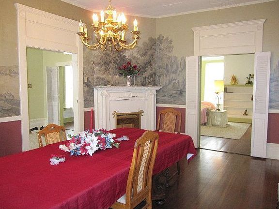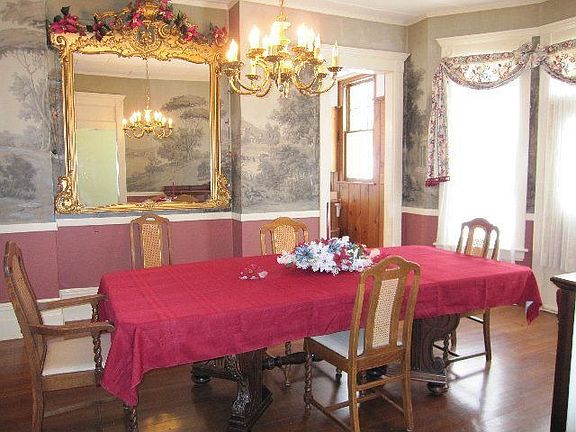 Historic home previously featured on the Christmas Tour of Homes. Large formal entrance hall. Grand dining room with fireplace and mural scenes. (Seller reserves rights to the antique mirror). Spacious kitchen with high quality cabinetry, cozy upstairs bedrooms with fireplace, finished attic has been used for bedrooms, many unusual nooks & crannies. Many built-in storage spaces. Roof recently replaced. Newer high efficiency furnace. Updated electrical.