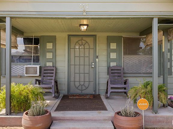 ***Seller will contribute $7500 toward buyer's closing costs*** Eclectic home that has been truly loved and cared for by the homeowner. Great covered front porch with a large fenced in yard. Refurbished hard wood flooring, new paint, new ceiling fans, new wall heater, window coolers, laminate flooring in kitchen & dining area, tile counters with white cabinets, indoor laundry room, two generous sized bedrooms, adorable Jack & Jill bathroom between the bedrooms, large covered back patio, rear yard has orange trees, apricot tree, and grapes with plenty of room for much more. The c-train will stay with the home for extra storage plus a good sized detached one car garage. This is absolutely the perfect starter home! You will not want to miss this beautiful home!
