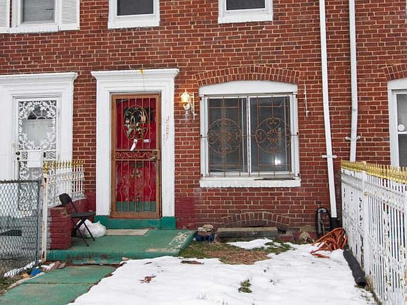 Cherry Hill rowhome with eat in kitchen, washer, dryer, and spacious backyard! Convenient location, close to shopping and Inner Harbor. Lots of investment and rental potential! Sold as is.