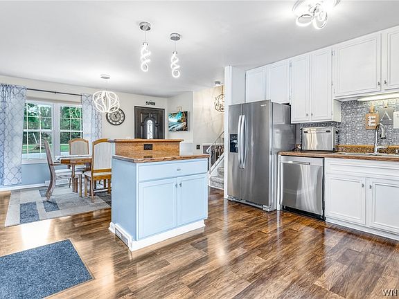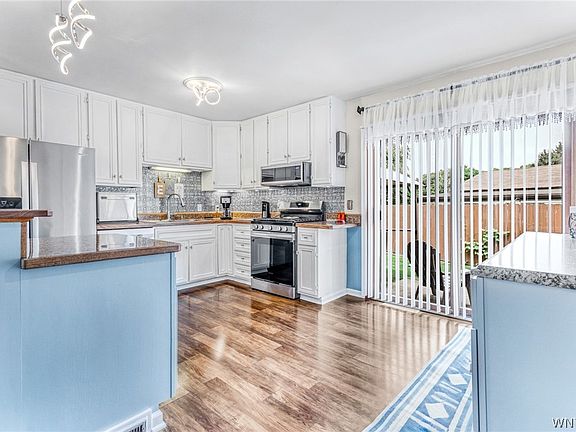 VR Pricing! Considering offers $189,900-$200,000+ Updated and MOVE-IN READY 3 bedroom, 1 bath home with all the essential upgrades taken care of! Property features a fabulous refreshed kitchen featuring custom light fixtures, a center island, newly painted cabinets and an open flow to the dining area, perfect for both everyday meals and entertaining. Spacious and bright living room is large enough for football Sundays and family gatherings. 3 good-sized bedrooms, all freshly painted in neutral tones to suit any decor. Full bath includes a ceramic-tiled walk-in shower, newer vanity and flooring plus modern finishes. Sliders from kitchen lead to a back patio, ideal for outdoor relaxation and barbecues and a private backyard with storage shed. Attached HEATED garage that can store vehicles, be used as a summer hangout area or workshop space. Updates in 2022 include- whole interior painted, new carpet throughout, air ducts cleaned, new furnace and A/C, replacement windows, new front exterior and screen doors, outdoor lighting, driveway sealed. 2023- Kitchen refreshed, new light fixtures installed. 2024- New gutters and gutter guards added. SHOWINGS BEGIN NOW!