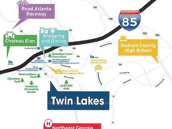 This home is a must see in the most gorgeous community in Jackson County!!! The Robie floor plan is our most popular2 story home here at Twin Lakes. Owner's Suite is spacious there is a nice size loft area. Lovely guest suite and full bath located on the main floor. This home is located in the master planned community of TWIN LAKES with AMAZING AMENITIES: RESORT STYLE POOL - CLUBHOUSE - FITNESS CENTER - PLAYGROUND - DOG PARK, LAKESIDE PAVILION - Adirondack CHAIRS and SWINGS. Watch the sunsets over the water and stroll around the serene LAKES and walking trails. Home features granite countertops and stainless steel appliances, hardwood floors on 1st floor except bedrooms & baths. Relax and enjoy your coffee in the morning, or a glass of wine with friends in the evening while grilling under the COVERED BACK PATIO. Total Price includes 2 zone lawn irrigation system, window blinds, 2 ceiling fans, garage door opener, architectural shingles, 4 sides brick water tables, etc. Smart Home connected. Jackson County's newest Premier Master Planned Community. Ask about the FREE 10 year warranty through RWC with this home! Twin Lakes is only 2.2 miles from I-85, 5 minutes to Downtown Hoschton/Braselton with their quaint shops, restaurants and local brewery. Northeast Georgia Medical Center is only 15 minutes away and Chateau Elan Winery and Golf Club is just 10 minutes away! NEW PUBLIX Supermarket is planned at the front entrance to Twin Lakes off Highway 53. Stock Photos used.